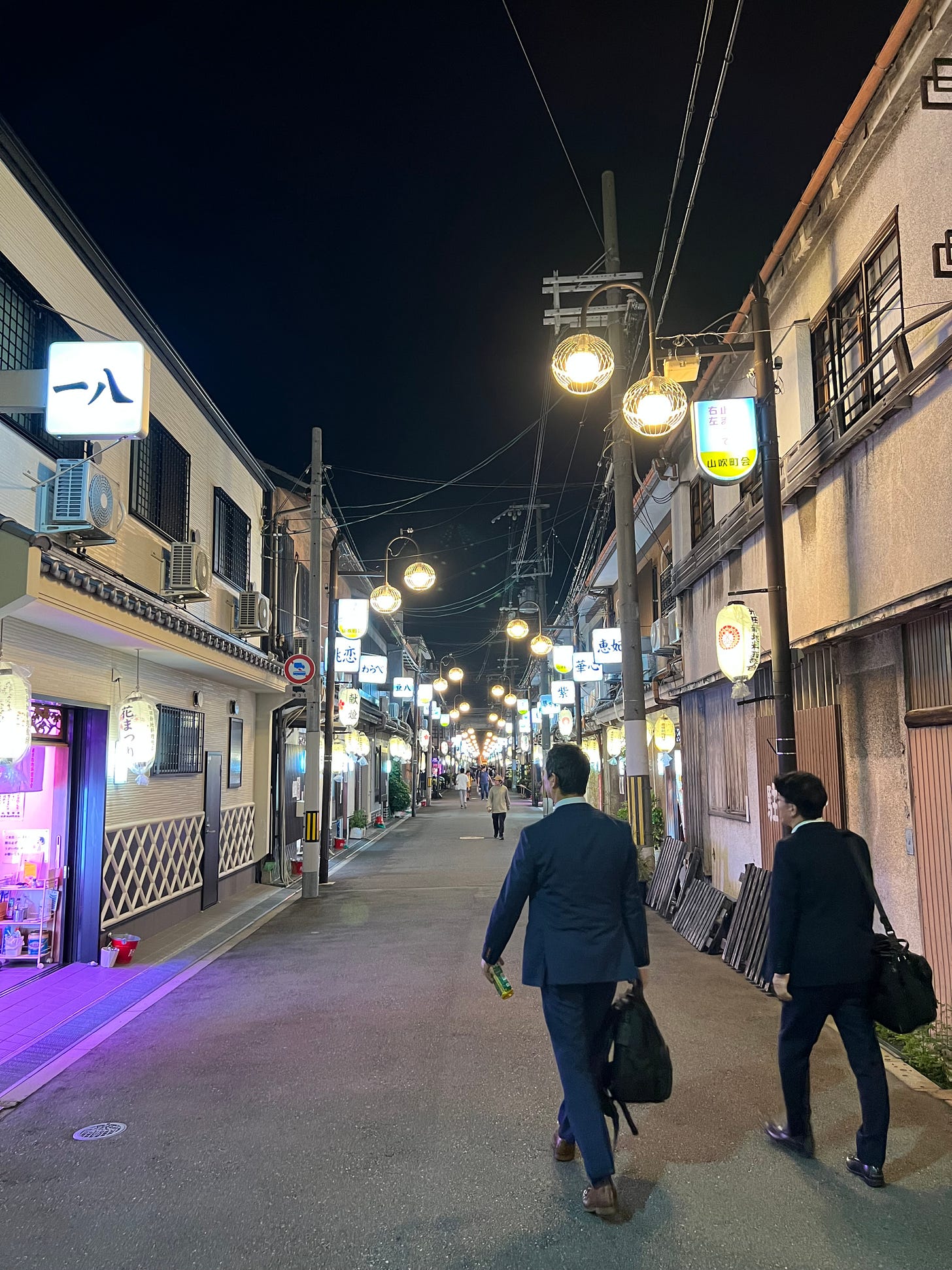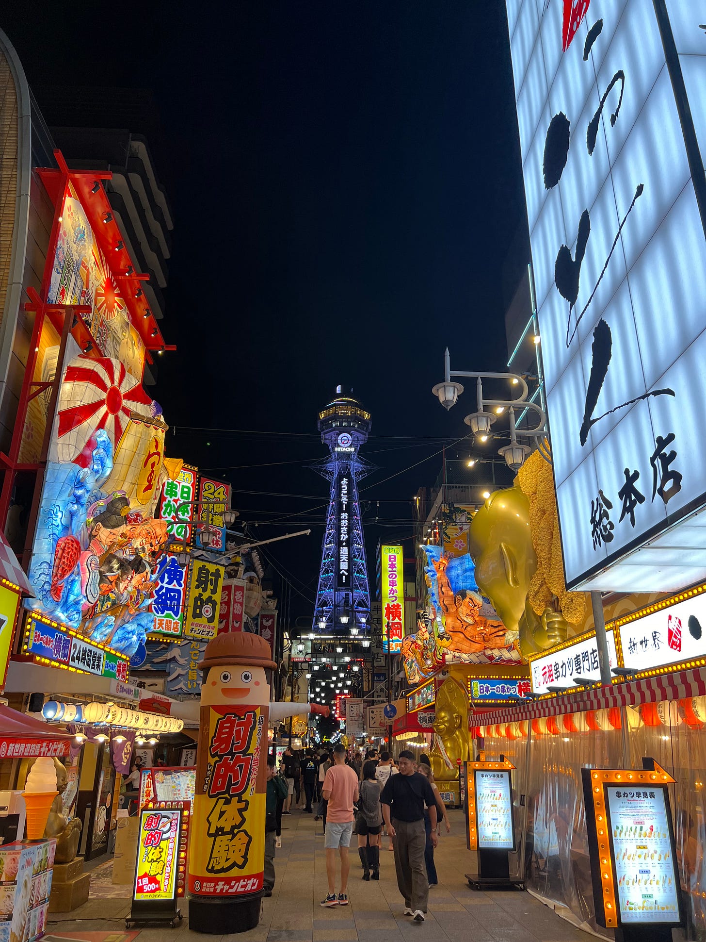 My guide took me on a tasting tour, and we ate delicious breaded meats, fish, veggies, on skewers (kushi-katsu). Served with crisp cold draft beer. Also octopus doughnuts (tako-yaki) and beef offal noodles and sweet chestnut rolls and all of it extremely local and all so so good.