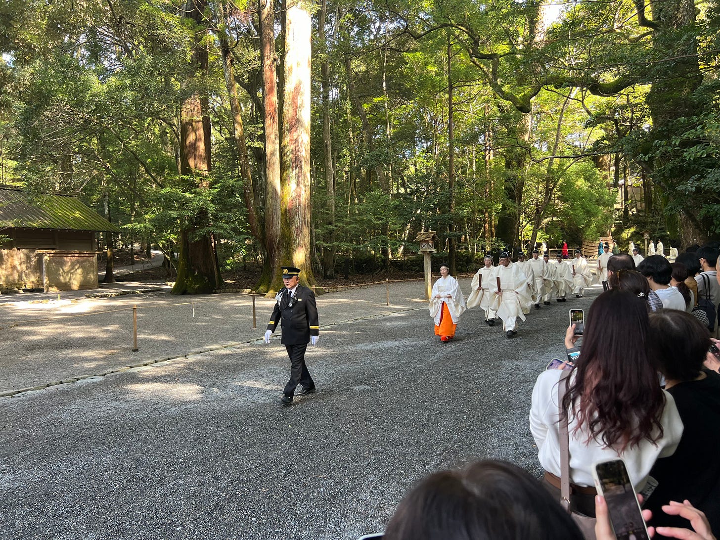 The imperial princess Kurodo Sayako, sister of Emperor Naruhito - and appointed shamaness-priestess of Ise - walking from the shrine where she had just done the sacred, full moon, mid-October harvest festival rice-offering ceremony: the most important ceremony of the year. A one in a billion chance that I got to see her, at Ise.